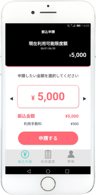 申請したい金額をスクロールで選択します。